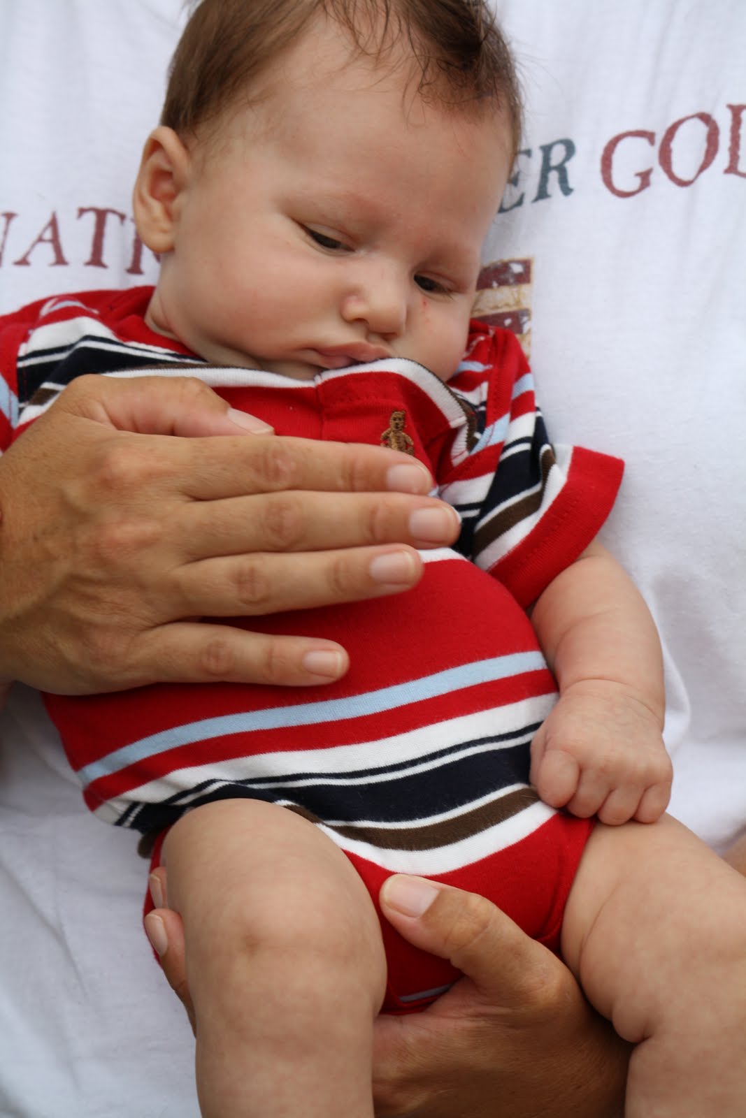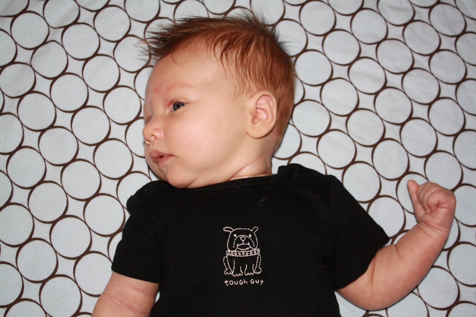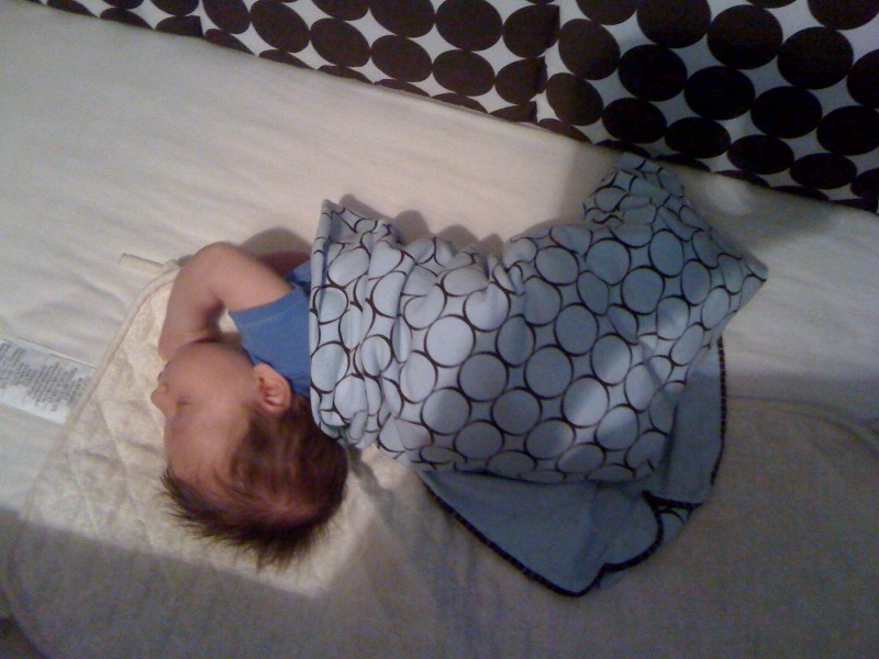 He's 8 weeks today. We're going to have our hands full! I put him in his crib straight, and when we go to get him out in the morning this is what we find: