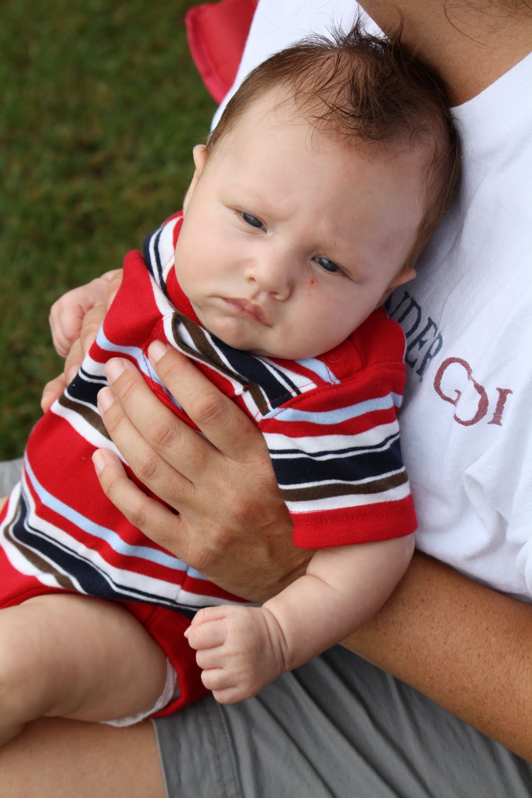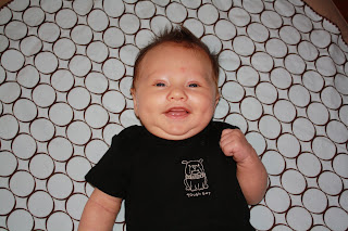 We were asking the doctor about his ability to almost roll over already, and last night we were scared to let him stay on his side to sleep. The doctor confirmed that we needed to make sure he was laying on his back, but I think was a little skeptical of his ability to do this already. Then, while checking his strength "standing up," Knox pretty much held his weight for a few seconds and then started taking steps towards the doctor. He picked him up and stood him up further away, and sure enough Knox "walked" all the way to him. He said very few babies do this at his age, so we need to prepare ourselves for an early mover and early walker. He said at his 4-month check up we'll need to talk about baby proofing the house. Holy cow, seriously? I knew he was squirmy, but BABYPROOFING? Already? Geez...figures we'd have the crazy child :)