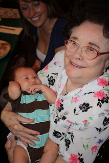 We had the priviledge of taking Knox down to see his Great-Great-Aunt Arjorie last night. He loved getting to meet her, and I think it's safe to say the feeling was mutual!!